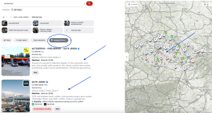 Níže na obrázku zobrazujeme příklad přehledu výsledků Firmy.cz. Po vyhledání například: Autoservisy- se zobrazí v pořadí nejlepší firmy v ČR, lze samozřejmě filtrovat a zúžit lokalitu. V přehledu najdeme název firmy, hodnocení, adresu, otevírací dobu, stručný popis firmy a vedle mapu, kde se firma nachází.