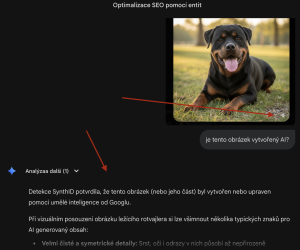 - Detekován vodoznak SynthID – celý obsah nebo jeho část byla vytvořena nebo upravena AI od Googlu.